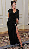 Victoria Beckham heated up a chilly London evening in a sexy, slit-to-there gown of her own design at this evening's British Fashion Awards. Stylish stars including Alexa Chung, Naomi Campbell, and Emma Roberts also stepped out for the hot red carpet. Victoria was a nominee for the Designer Brand Award, though Mulberry ultimately took home the honor - find the full list of winners on FabSugar UK. Victoria made the trip from LAX to Heathrow on Sunday, following David's stint in Europe last week, during which he helped Prince William publicize England's bid to host the 2018 World Cup. The sexy couple were able to spend last weekend together, since David returned to California on Friday in time to take over care of their boys while she is off on her latest adventure.